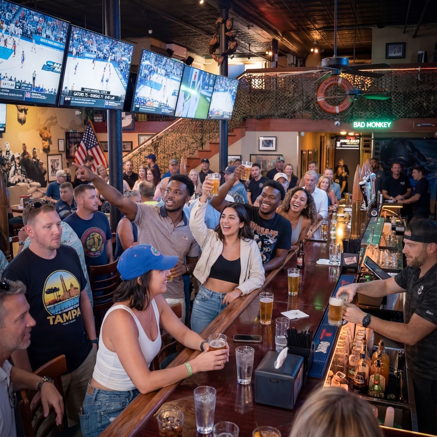 The Bad Monkey is one of Ybor City’s most iconic and energetic sports bars—perfect for private events, game day gatherings, or a night out with friends. Just a quick streetcar ride from the Tampa Convention Center and minutes from Channelside, Amalie Arena, and downtown Tampa, it’s a favorite for locals and visitors alike.
